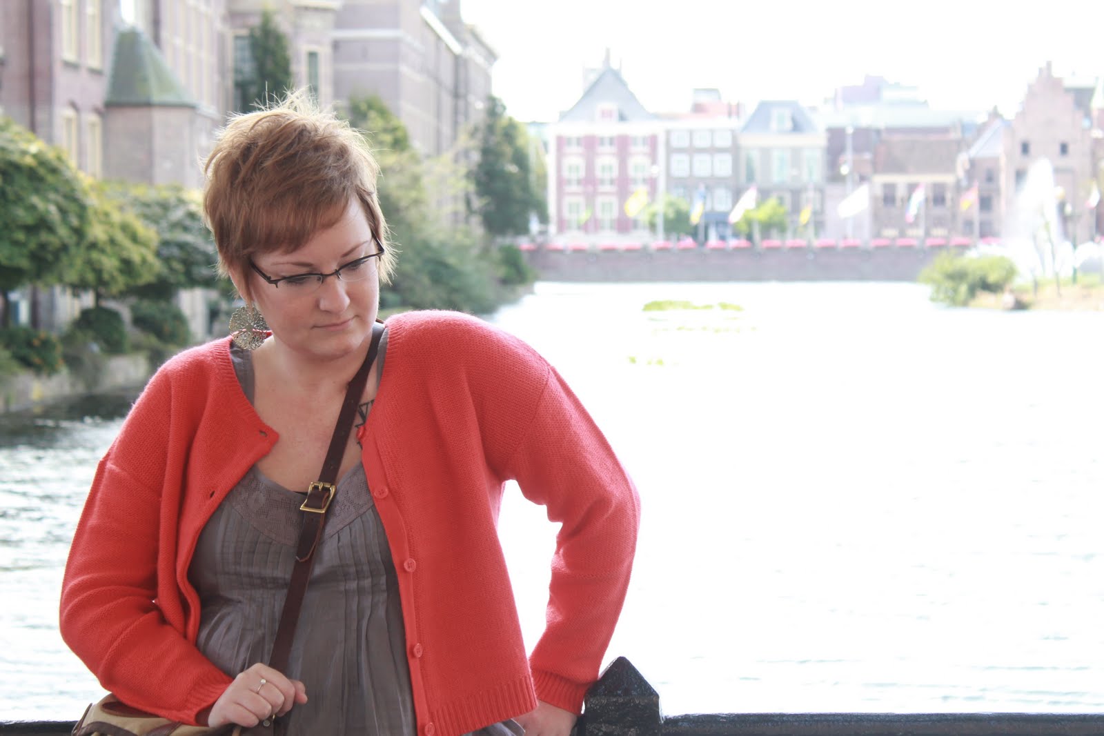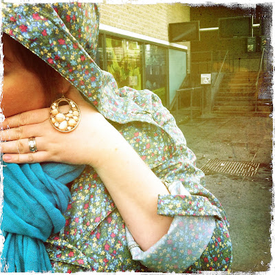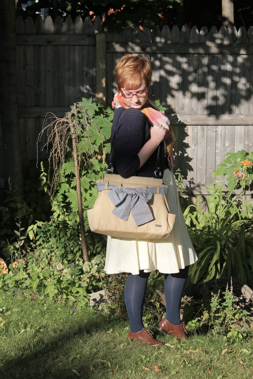 dress: H&M, long sleeved tee + cardigan: Merona, boots, leggings + shades: Target, earrings: Forever21 {gift from mom}, bag: Miche.